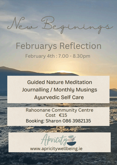 February's meditation sessions help participants tune into the changing nature of the seasons and explore how to support our mind and body to stay balanced with the changes in our external environment. These will be gentle sessions, suitable for all. People can book by contacting Sharon on 0863982135. See the image below for further details.
