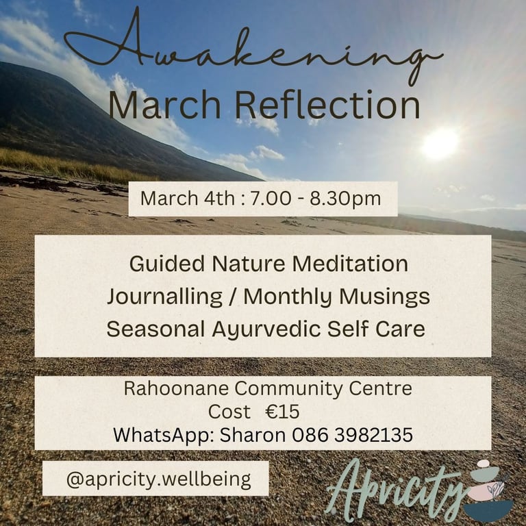 March's meditation will be a gentle session, suitable for all. People can book by contacting Sharon on 0863982135 through WhatsApp. See the image below for further details.